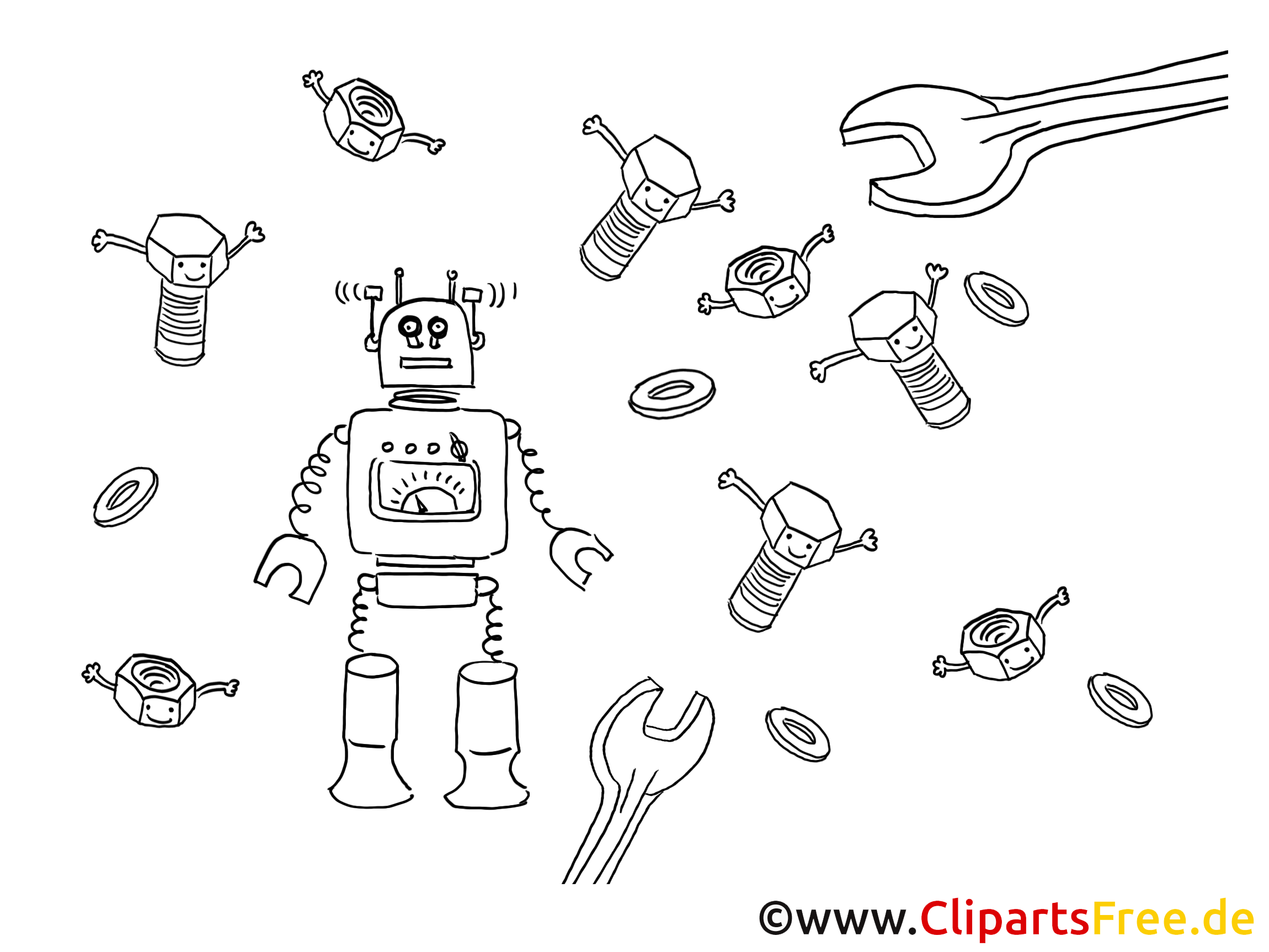 In dieser Malvorlage sehen wir einen lustigen kleinen Roboter, der mitten in einem Sturm von Schrauben, Unterlegscheiben und sogar einem großen Schraubenschlüssel steht. Seine große Augen scheinen neugierig und ein bisschen überraschend auf alles, was herumfliegt. Man fragt sich, was gerade passiert – vielleicht arbeitet er an einem aufregenden Technikprojekt? Übrigens, die vielen kleinen Teile, die um ihn herumwirbeln, geben dem Bild eine dynamische Note. Wir sehen eindeutig, dass der Roboter viel zu tun hat und es ziemlich spassig ist!