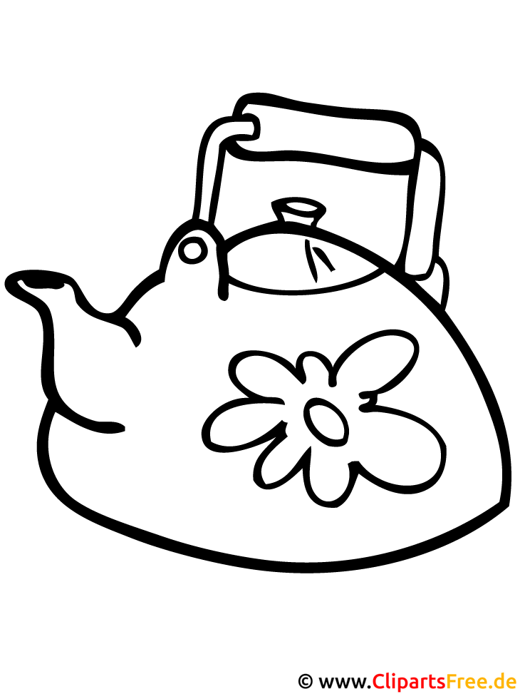 Kostenloses Ausmalbild Teekanne mit Blume als PDF Malvorlage