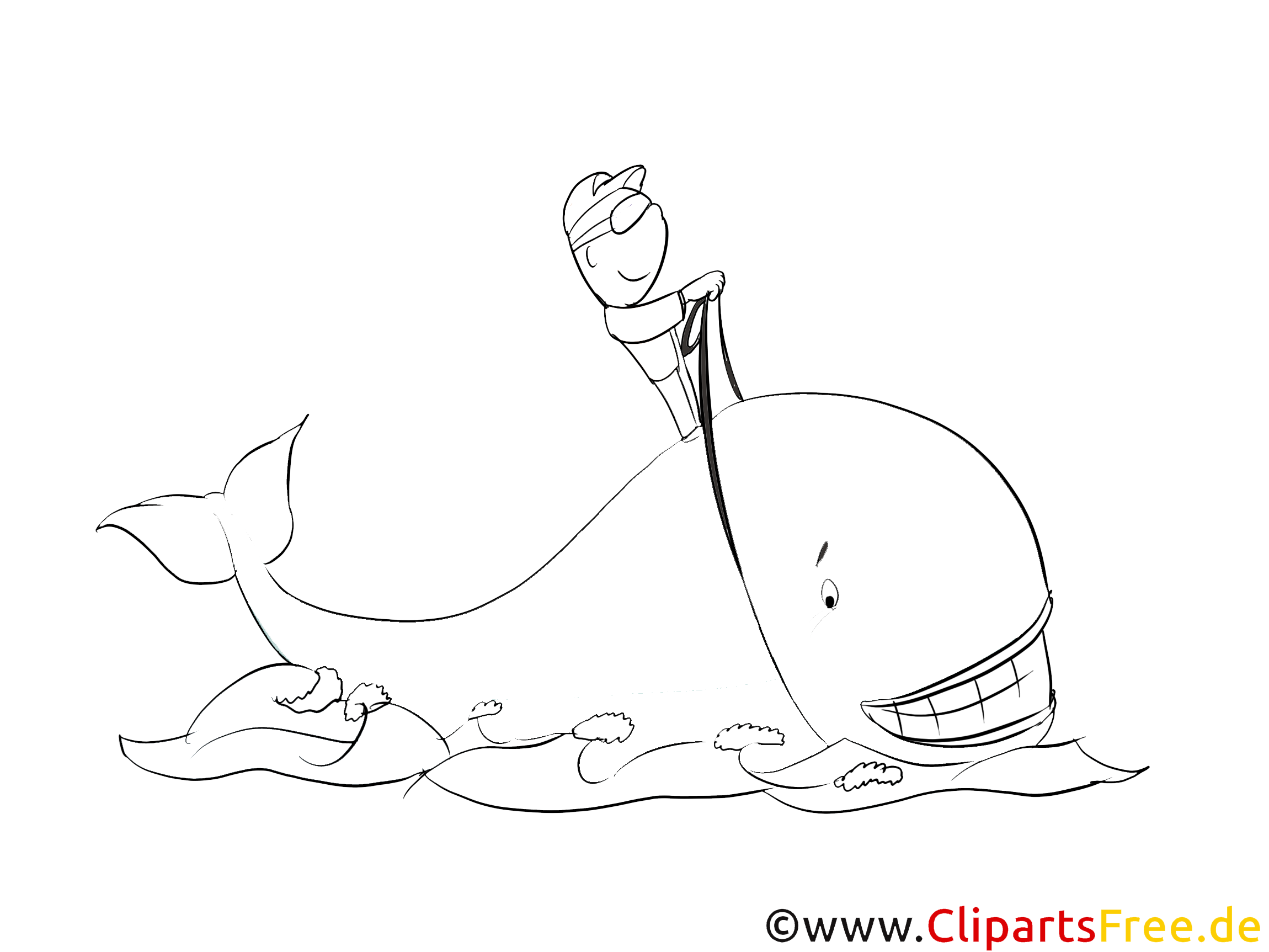 Kostenloses Ausmalbild Wal mit Junge – Malvorlage im PDF Format