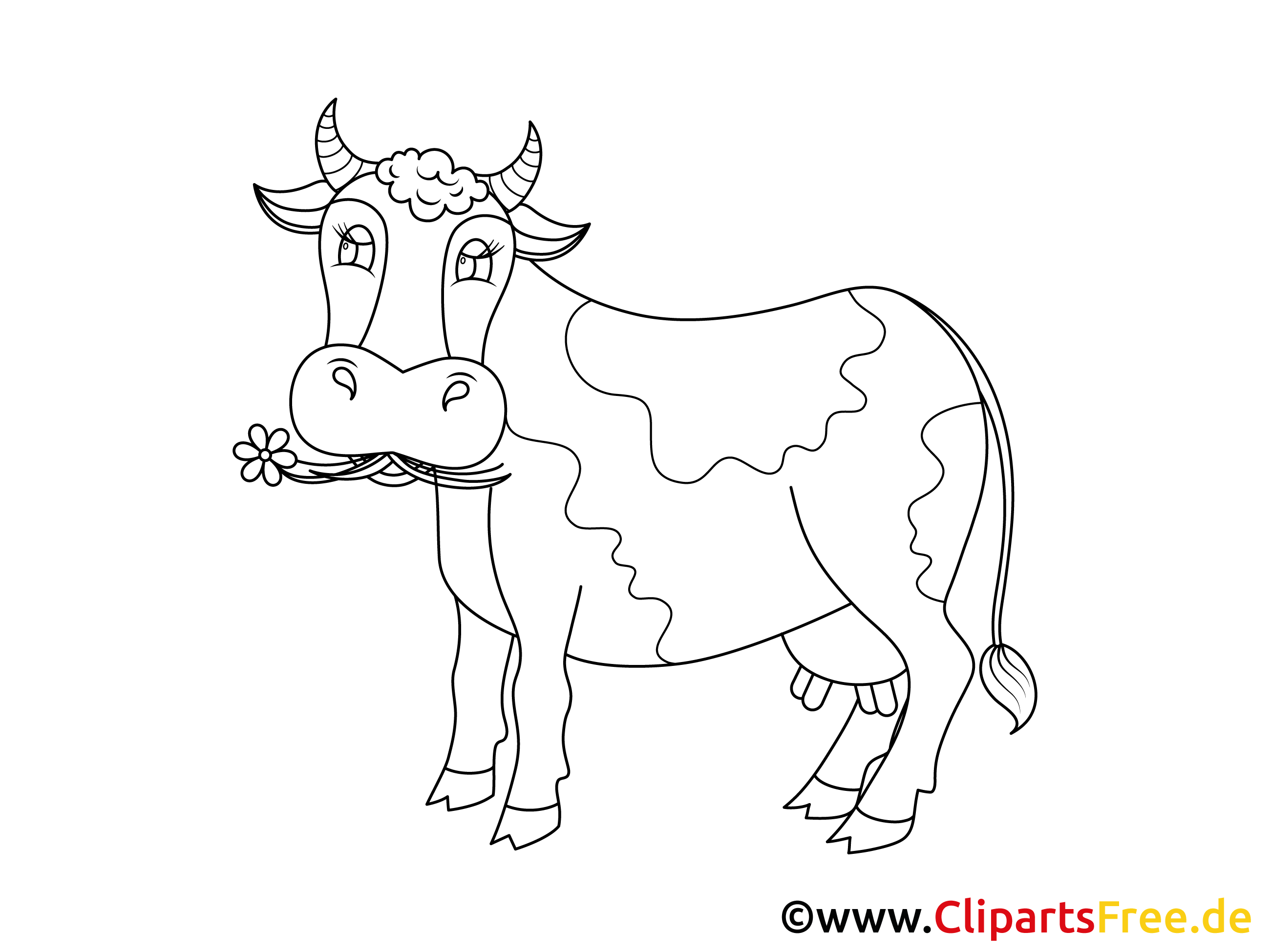 Kostenloses Ausmalbild einer Kuh als Malvorlage im PDF Format