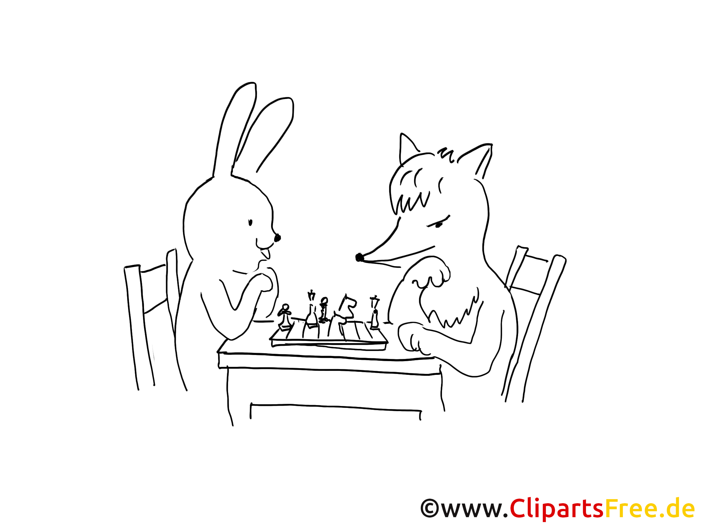 Kostenloses Ausmalbild von Hase und Fuchs im Schachspiel PDF