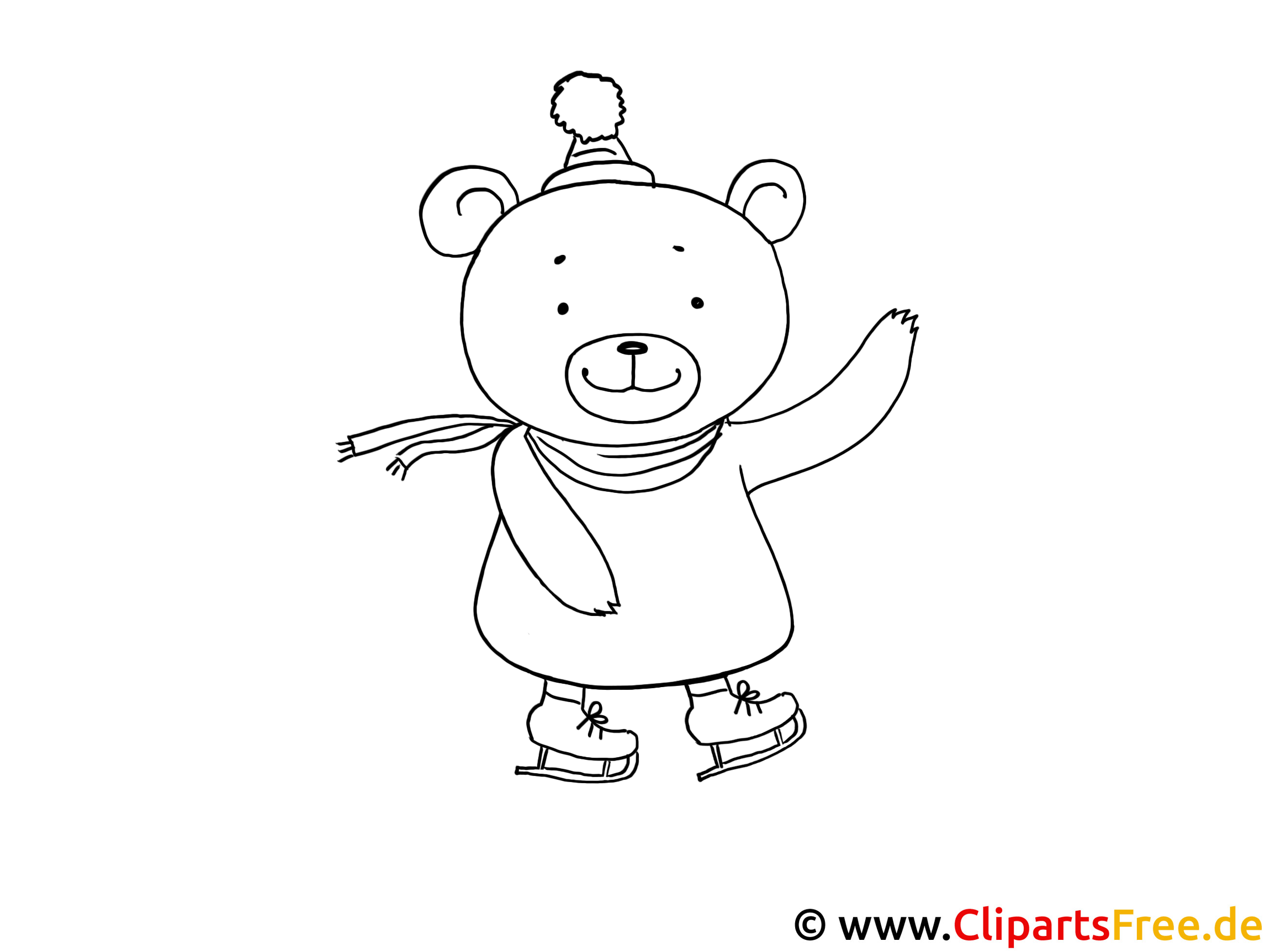 Kostenloses Ausmalbild Bär auf Schlittschuhen als PDF Malvorlage