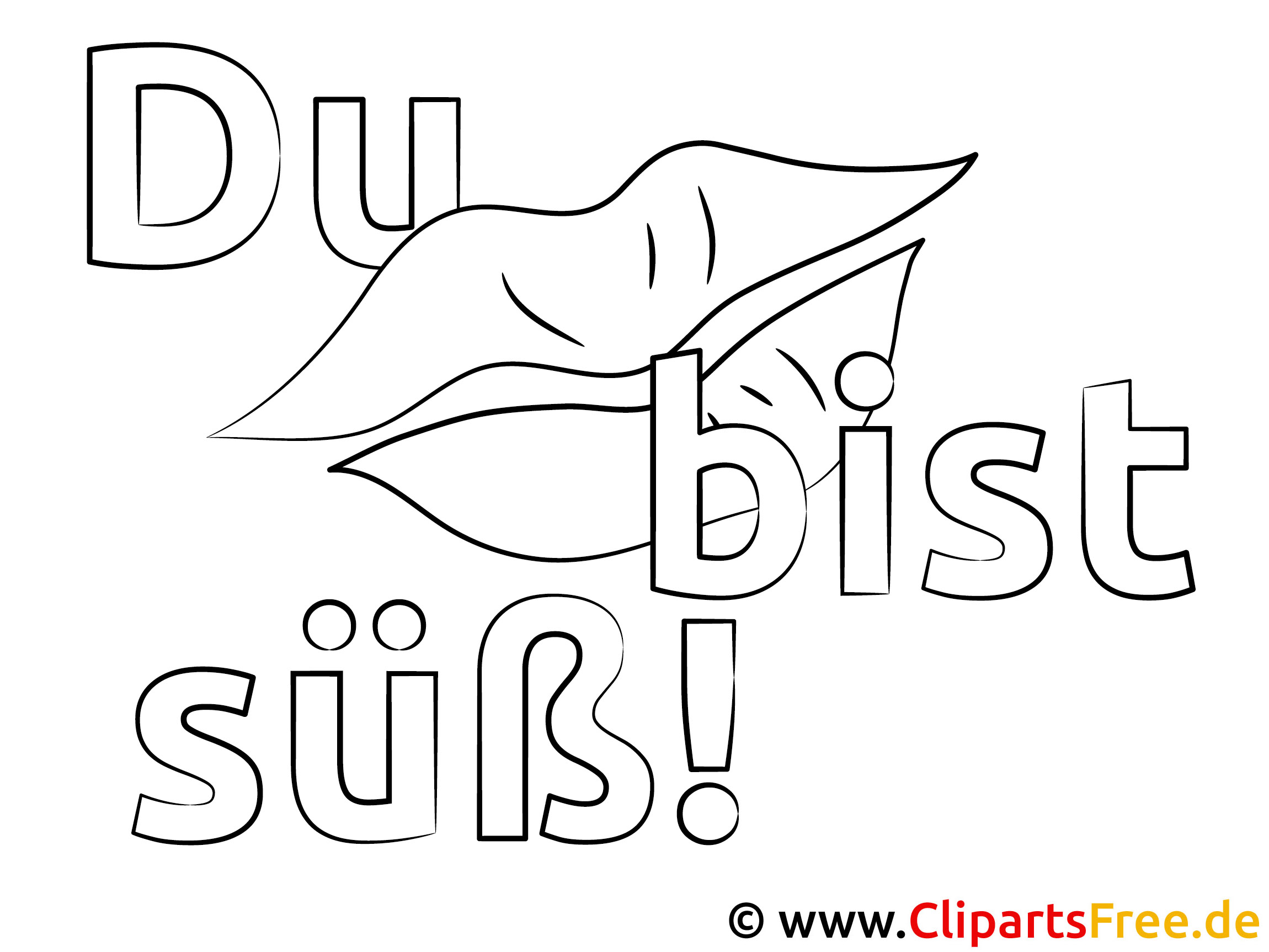 Das Ausmalbild zeigt einen verspielten, bunter Kussmund, und daneben steht in großen, einladenden Buchstaben: „Du bist süß!“ Ist das nicht niedlich? Es bringt bestimmt ein Lächeln auf jedes Gesicht, egal ob groß oder klein. Diese Kombination aus liebevollen Worten und dem fröhlichen Motiv ist einfach ideal für viele Gelegenheiten. Man könnte sagen, es strahlt eine positive Energie aus, die die Fantasie anregt. Perfekt geeignet, um jemandem eine Freude zu machen oder einfach nur zum Ausmalen!