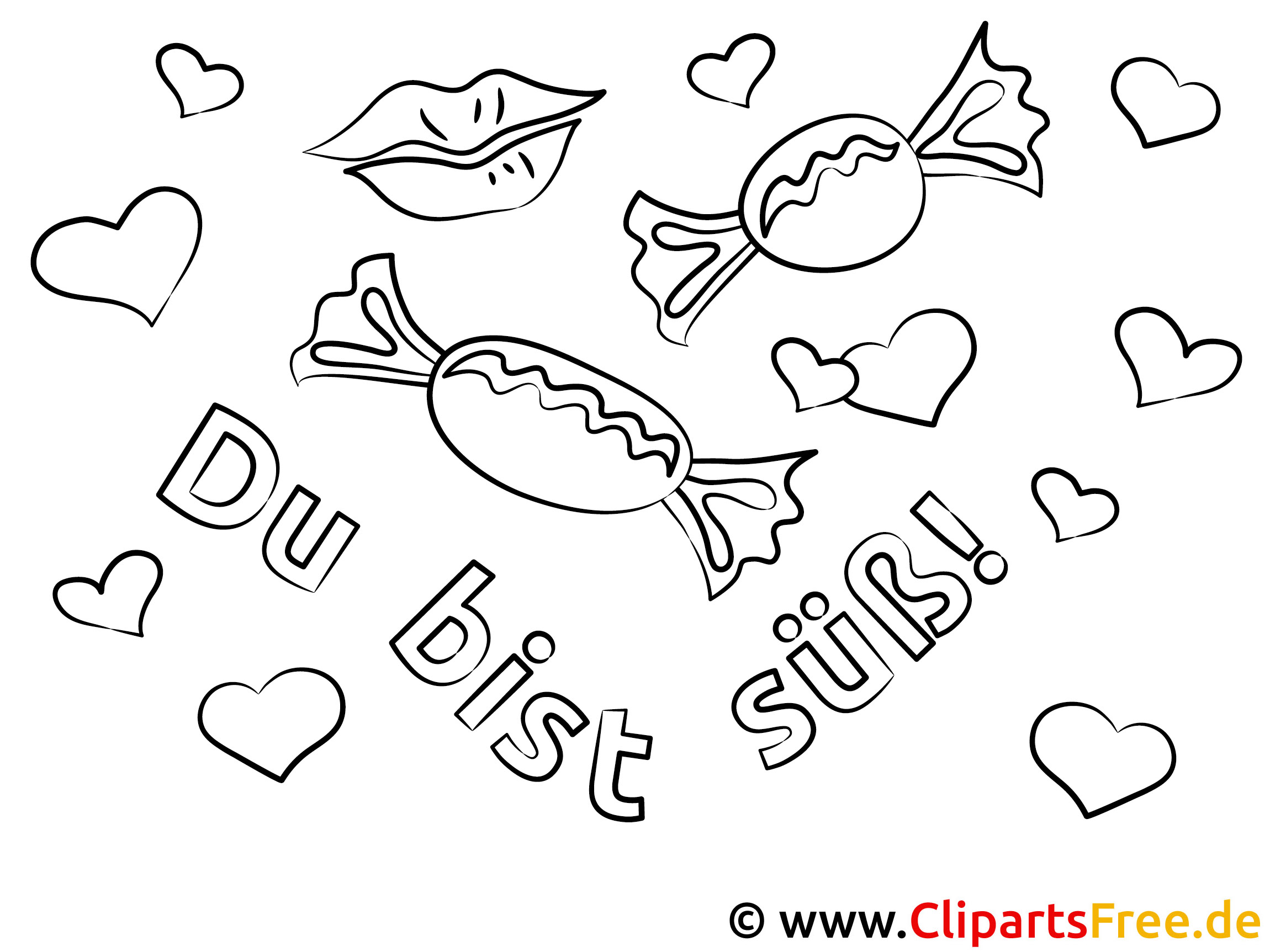 Kostenloses Ausmalbild mit Bonbons und Herzen als PDF Malvorlage