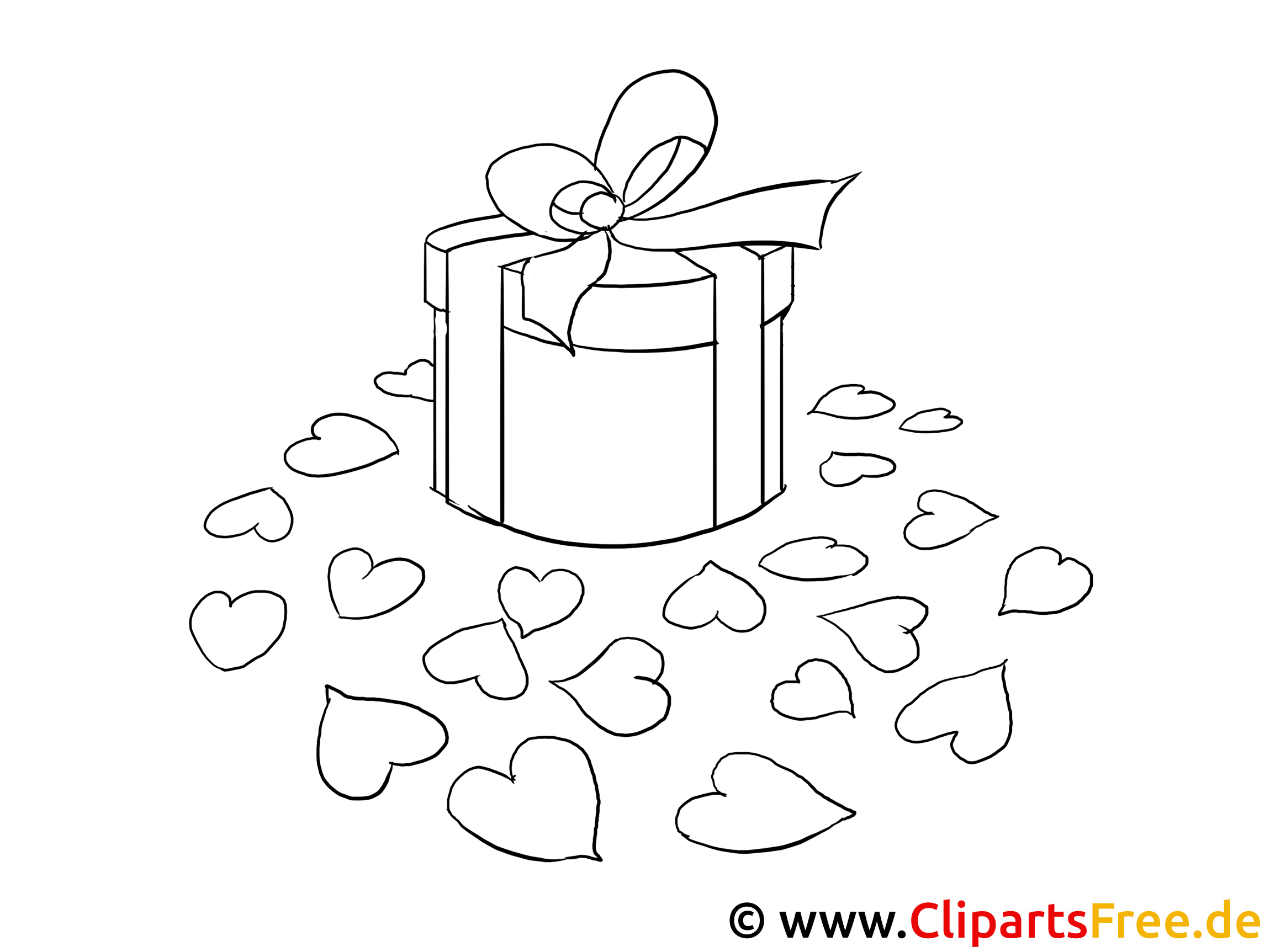 Kostenloses Ausmalbild Geschenk mit Herzen - Malvorlage PDF gratis