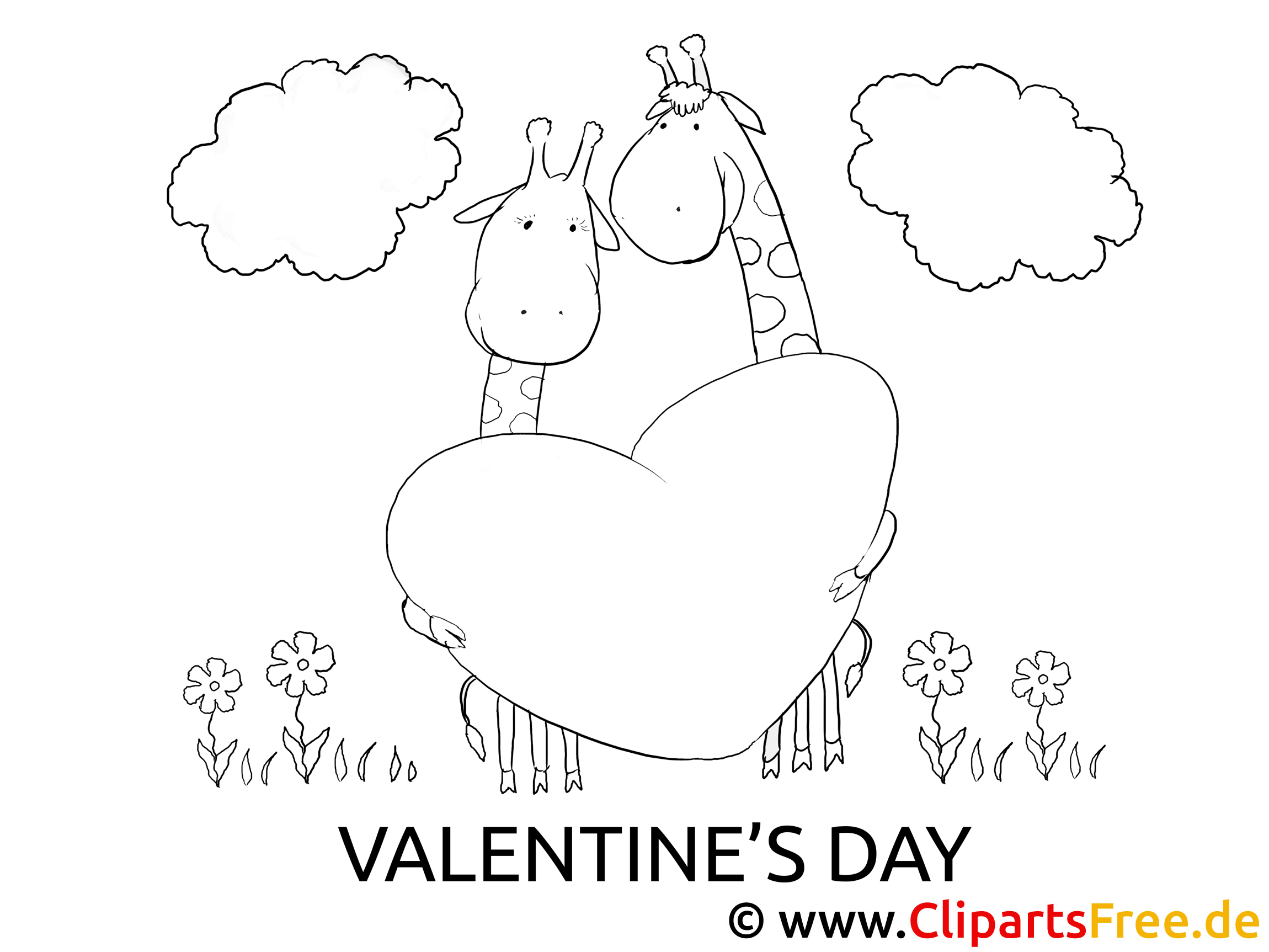 Kostenloses Ausmalbild Giraffen für den Valentinstag im PDF