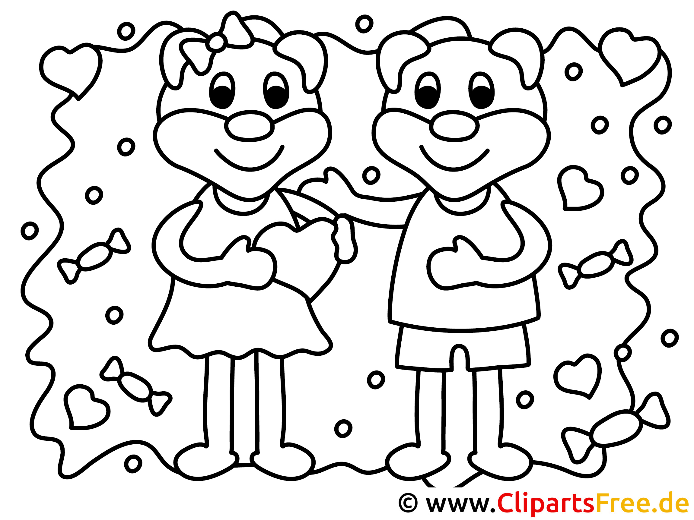 Das Ausmalbild zeigt zwei fröhliche Bärenfreunde, die sich umarmen. Ein Herz in der Hand, um das zu zeigen, dass sie beste Freunde sind. Um sie herum fliegen kleine Herzen und bunte Bonbons – so süß! Die fröhlichen Gesichter machen einfach gute Laune und bringen sofort ein Lächeln ins Gesicht. Es gibt viele kleine Details zu entdecken, die das Bild lebendig wirken lassen. Eine tolle Malvorlage für alle, die Tiere und Freundschaft lieben!