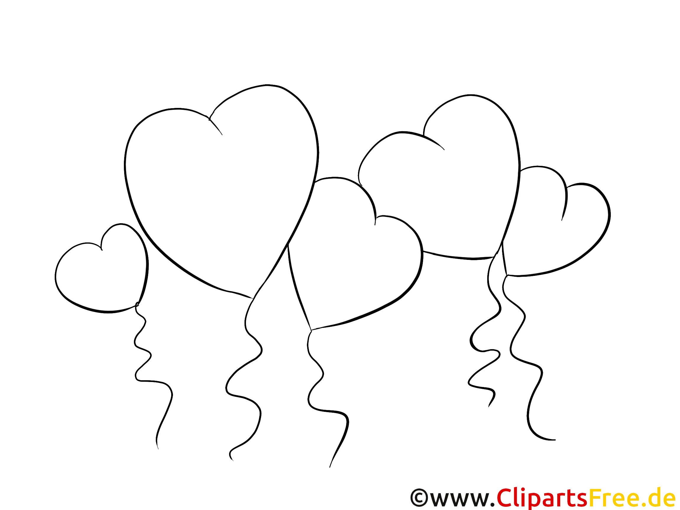 Kostenloses Ausmalbild Herzluftballons als PDF Malvorlage gratis