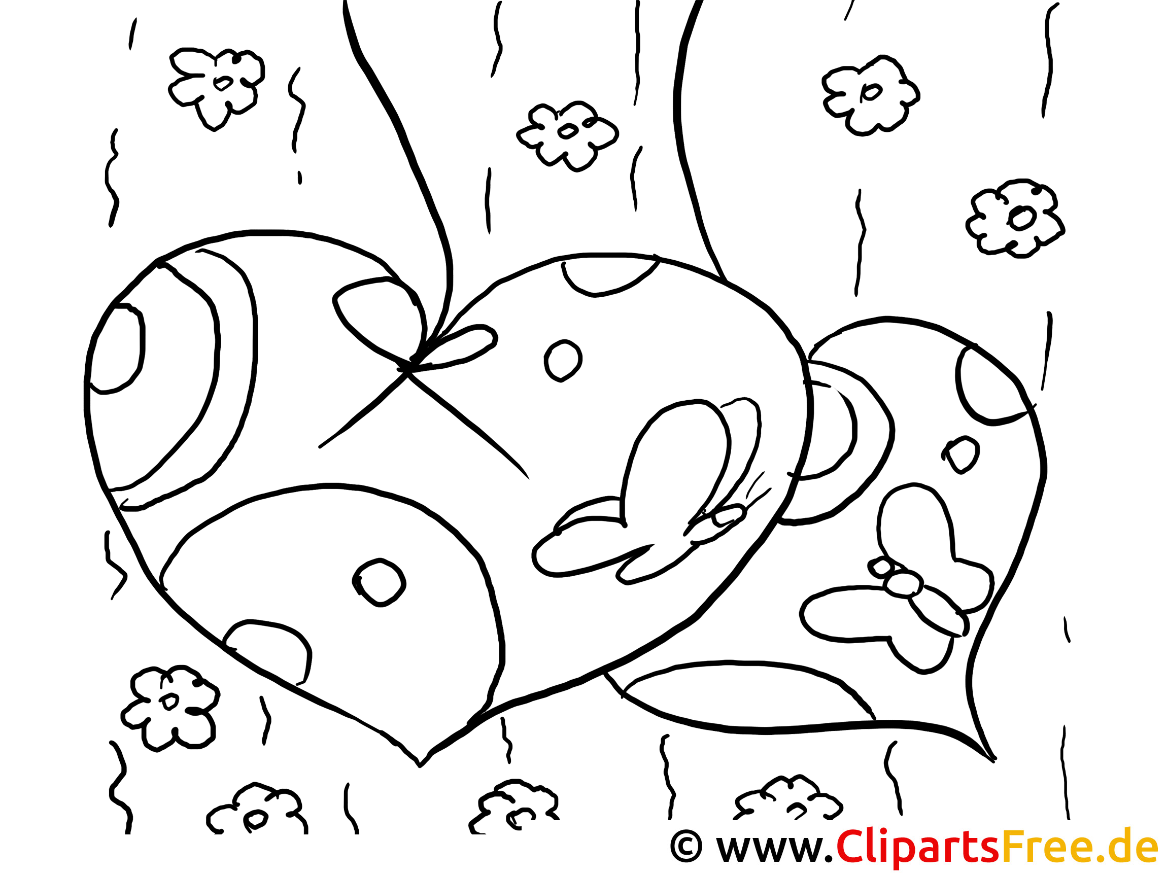 Kostenloses Ausmalbild mit Herzen und Schmetterlingen im PDF