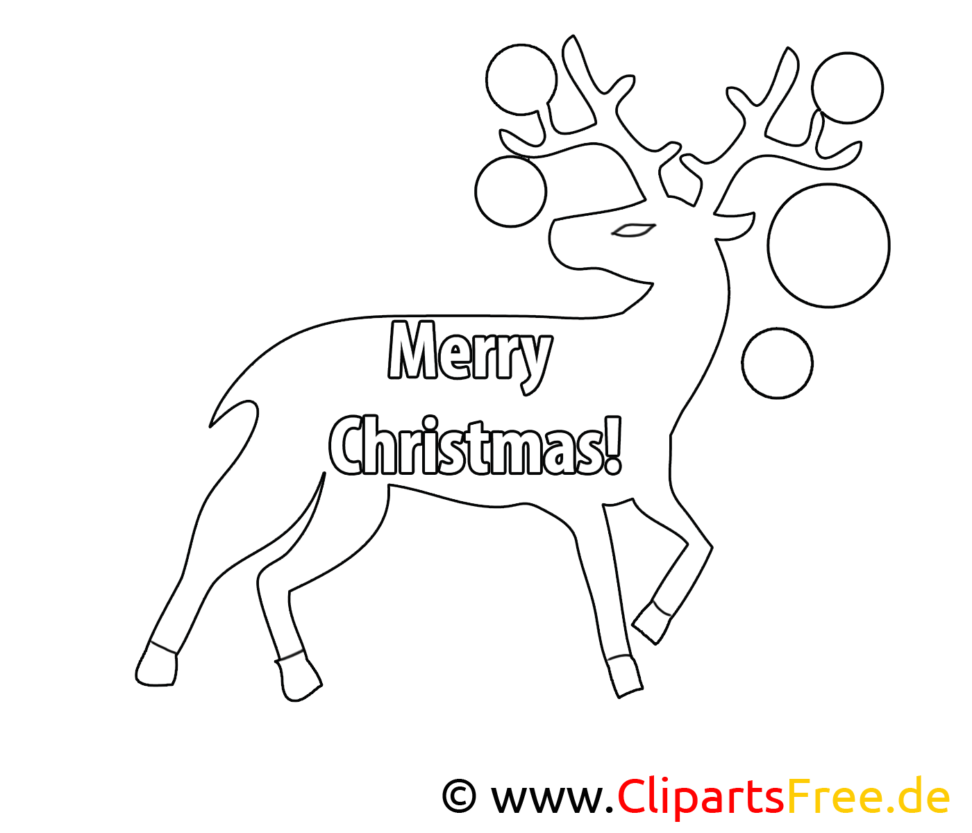 Das Bild zeigt ein fröhliches Rentier, das stolz mit seinen großen, geschwungenen Geweihen dasteht. Mit hübschen Weihnachtskugeln, die an seinen Geweihen baumeln, sorgt es für festliche Stimmung. In der Mitte steht der Schriftzug „Merry Christmas!“ – klar und deutlich. Das Rentier strahlt eine gewisse Freude aus, als würde es uns einladen, die Vorfreude auf Weihnachten zu feiern. Seine sanften Linien und die verspielten Details bringen einfach gute Laune – perfekt für die besinnliche Zeit des Jahres.