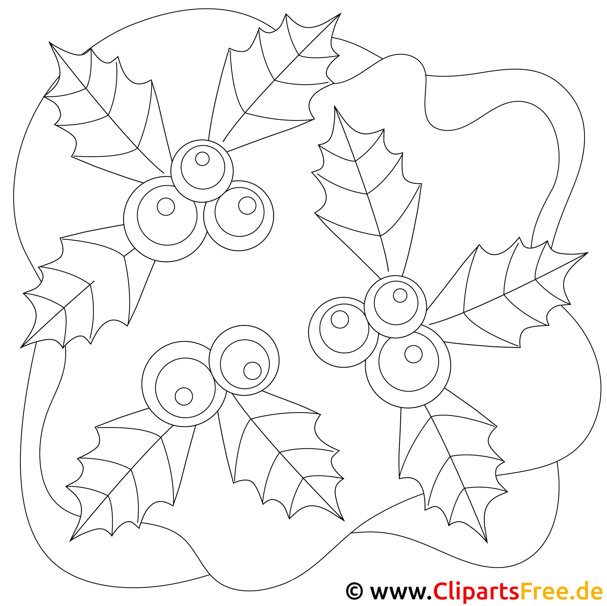 Dieses Malbild zeigt eine festliche, fröhliche Anordnung von Stechpalmenblättern und Beeren. Die grünen Blätter sind spitz und leuchtend, während die roten Beeren eine wunderbare Kontrastfarbe bieten. Die Linien sind klar und deutlich, sodass man die verschiedenen Elemente einfach voneinander unterscheiden kann. Es fühlt sich an, als ob man mitten in ein Weihnachtsmärchen eintaucht.