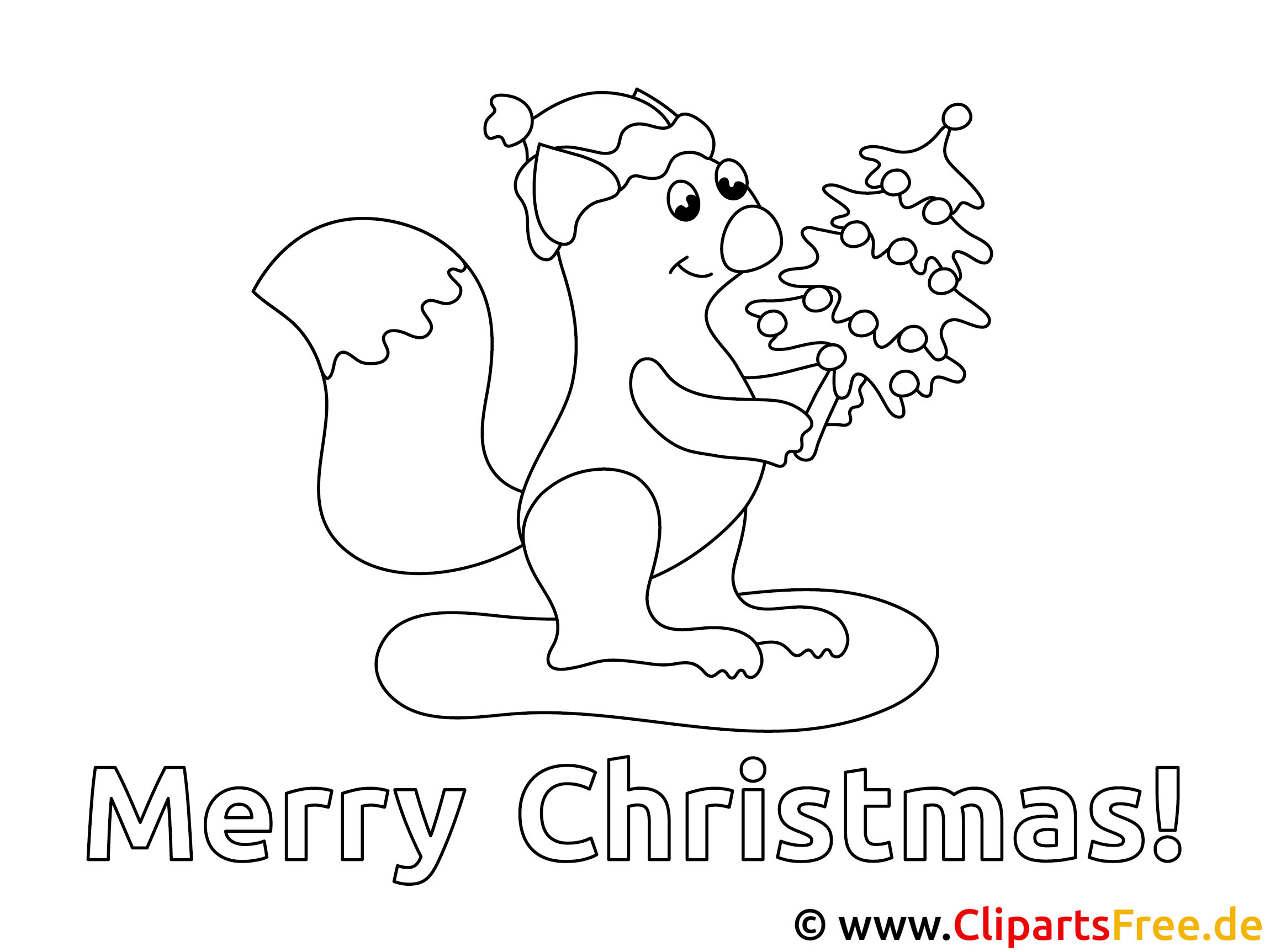 Hier haben wir ein süßes Ausmalbild, das ein putsches Eichhörnchen zeigt, das fröhlich ein kleines Bäumchen dekoriert. Das Tierchen trägt sogar einen putzigen Weihnachtsmann-Hut, der einfach zum Schmunzeln anregt. Es steht auf einem Boden und scheint gerade zu überlegen, welche Farben es für den kleinen Baum wählen könnte. Die große, runde Schnauze und die leuchtenden Augen verleihen dem Bild einen freundlichen Ausdruck, der Weihnachtsstimmung verbreitet. Das “Merry Christmas!” darunter ist ganz klar ein herzlicher Weihnachtsgruß, den man sofort ins Herz schließt. So viele Details sind vorhanden, dass man gleich anfangen möchte zu malen!