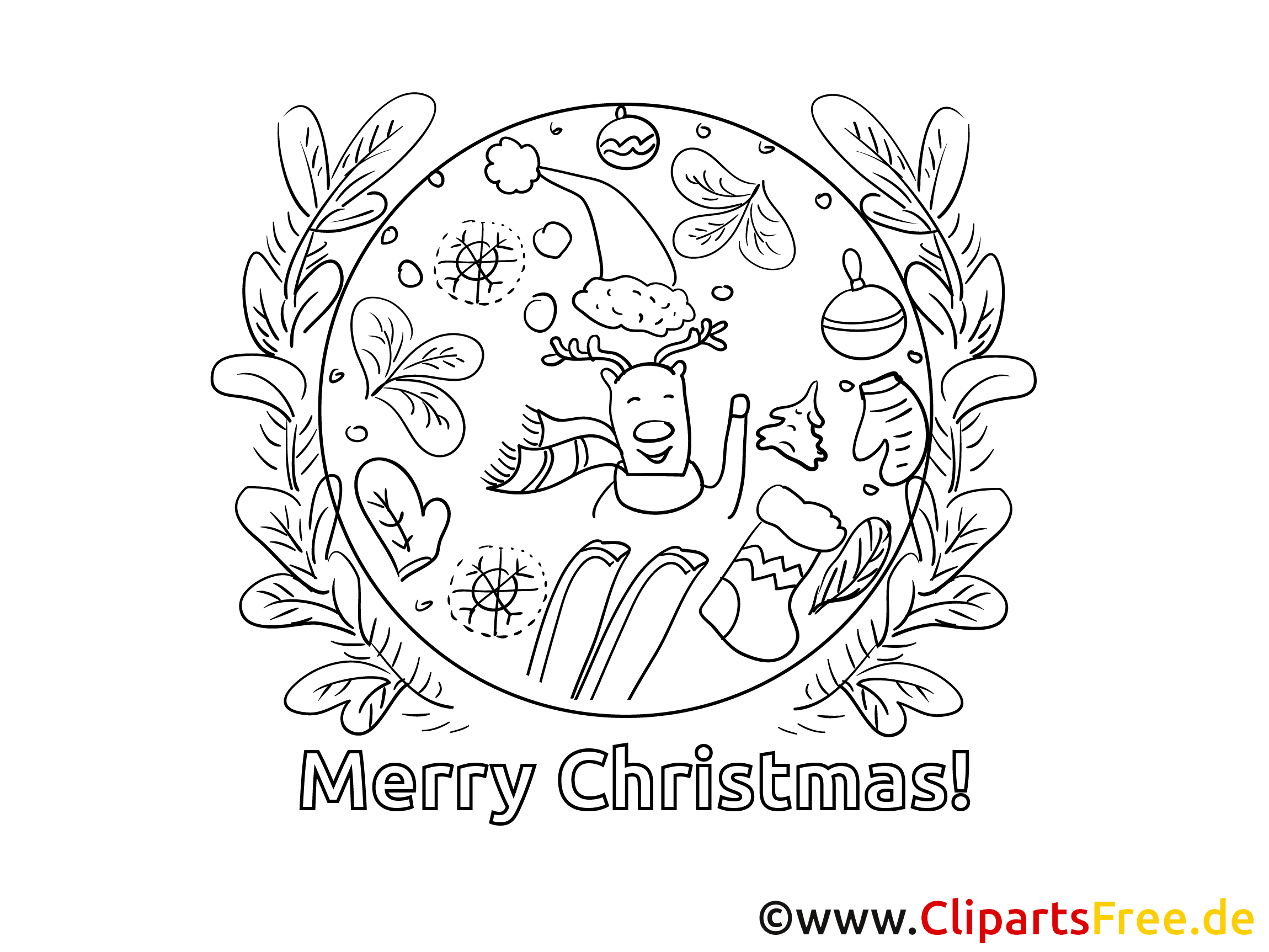 In dieser festlichen Ausmalvorlage dreht sich alles um Weihnachten! Ein fröhlicher Weihnachtsmann, der Ski fährt, lächelt mit seiner großen roten Mütze auf dem Kopf. Um ihn herum finden sich zauberhafte winterliche Elemente: Schneeflocken, bunte Weihnachtskugeln, und sogar einige hübsche Pflanzen(vermutlich Mistel und Tannenzweige). Die ganze Szene versprüht eine wunderbare, heimelige Stimmung – man bekommt gleich Lust, die Farben zu holen und loszulegen!