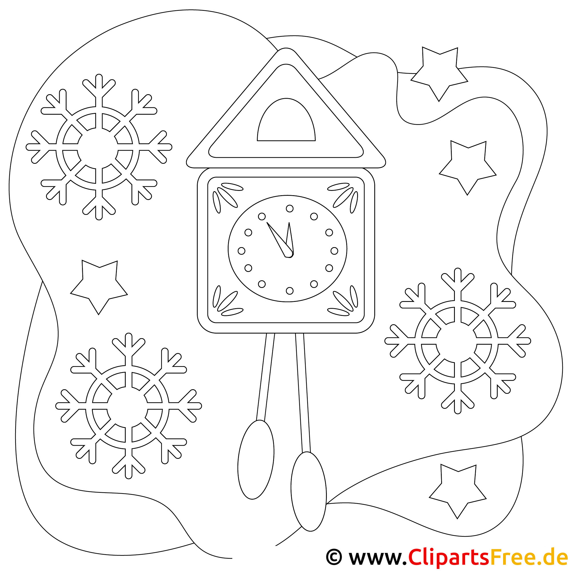 In diesem wunderbaren Ausmalbild sieht man eine niedliche Wanduhr, die aus einem kleinen Häuschen besteht. Sie ist so gestaltet, dass sie richtig einladend wirkt. Die Uhr hat große, runde Zahlen und einen kleinen Zeiger, der die Zeit anzeigt. Drumherum sehen wir hübsche Schneeflocken und süße, kleine Sterne. Das Gesamtbild vermittelt ein Gefühl von Winter-Idylle, gemütlich und warm, obwohl wir alle wissen, dass es draußen kalt sein kann. Ideal für kalte Tage, wenn man drinnen bleibt…