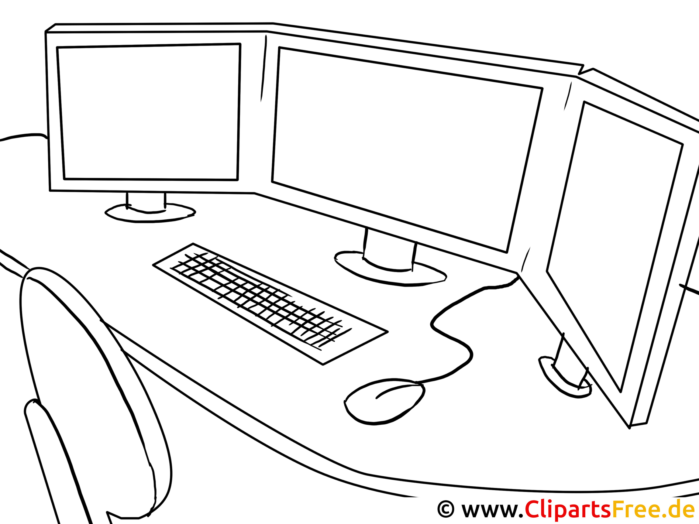 Hier sehen wir einen Arbeitsplatz, der wirklich modern aussieht! Mit zwei großen Bildschirmen, die links und rechts aufgestellt sind, wird eine tolle Atmosphäre geschaffen. Die Tastatur und die Maus laden zur Benutzung ein. Man könnte fast das Gefühl haben, gleich wird jemand an diesem Schreibtisch sitzen und wichtige Dinge erledigen. Das Ganze ist super einfach gehalten, so dass jeder seine kreative Note hinzufügen kann. Ob man nun die Bildschirme in bunten Farben ausmalen möchte oder ganz klassisch – die Möglichkeiten sind endlos!