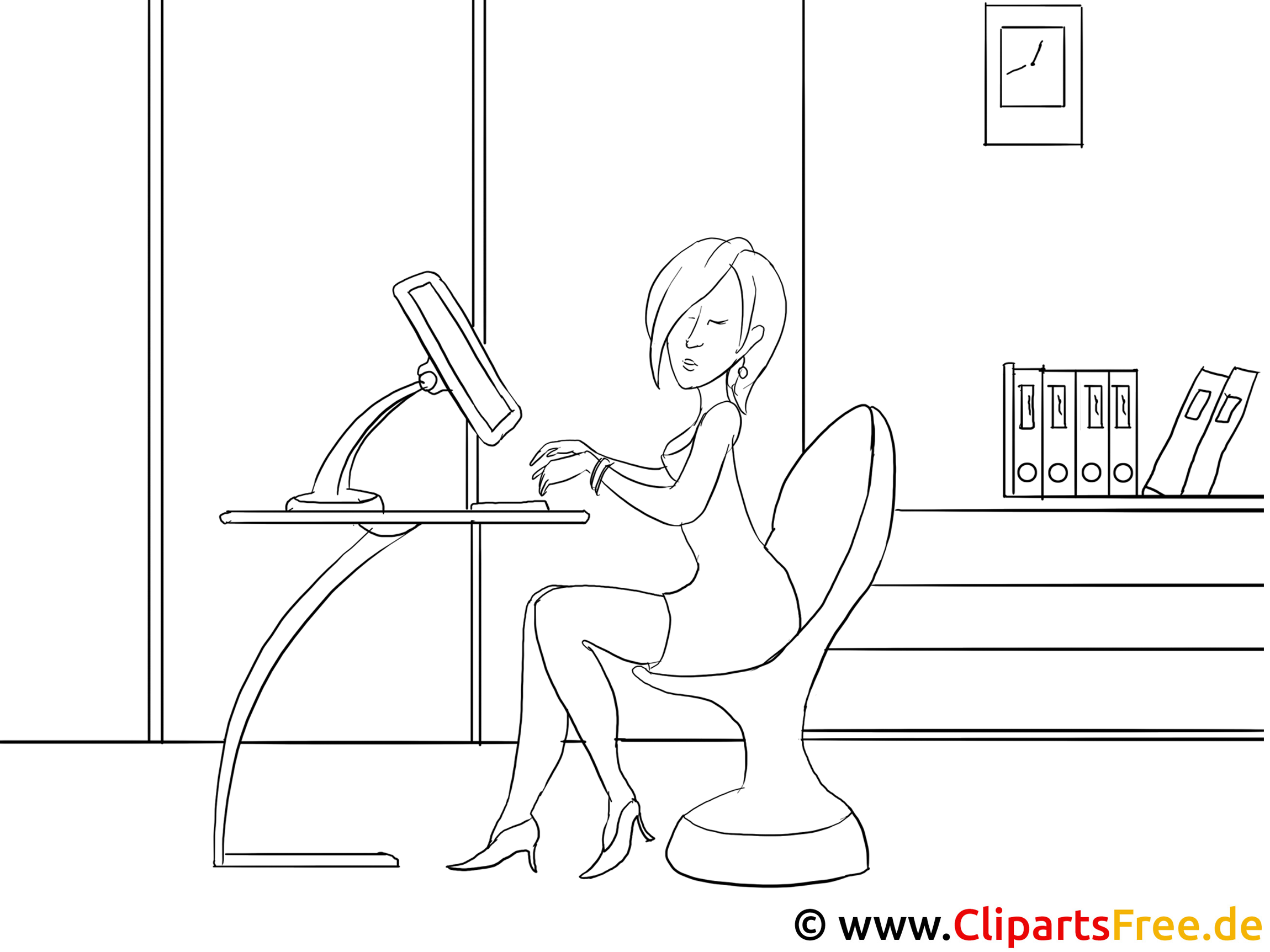 Frau arbeitet am Computer Bilder zum Ausmalen