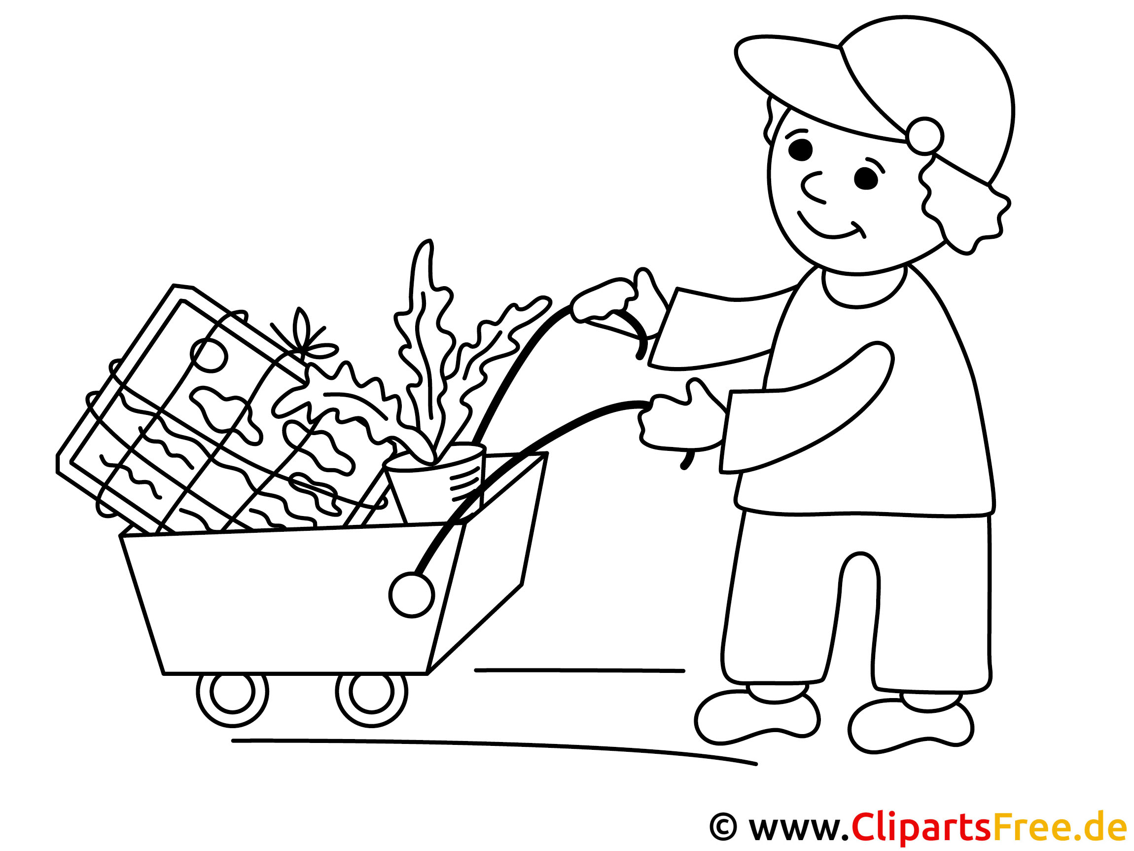 Gratis Malvorlage Schubkarre