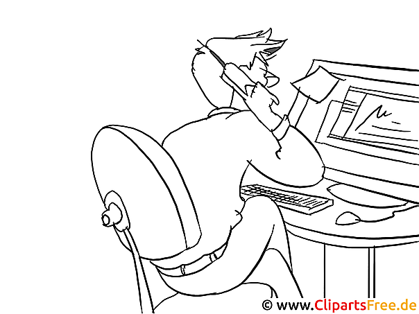 Der Zeichenstil ist eher schlicht gehalten. Die Konturen sind klar und deutlich, so dass alles einfach erkennbar ist. Die Linien sind nicht zu dick, was das Bild zart wirken lässt. Man kann die verschiedenen Details erkennen, wie die Haarsträhnen des Mannes oder die Form des Schreibtischs. Und das ist wirklich toll, denn so fühlt man sich direkt angesprochen. Es ist wie ein Fenster in eine andere Welt – eine Welt voller Möglichkeiten! Kinder werden es sicherlich spannend finden, diese Malvorlage mit ihren eigenen Farben und Ideen zum Leben zu erwecken.
