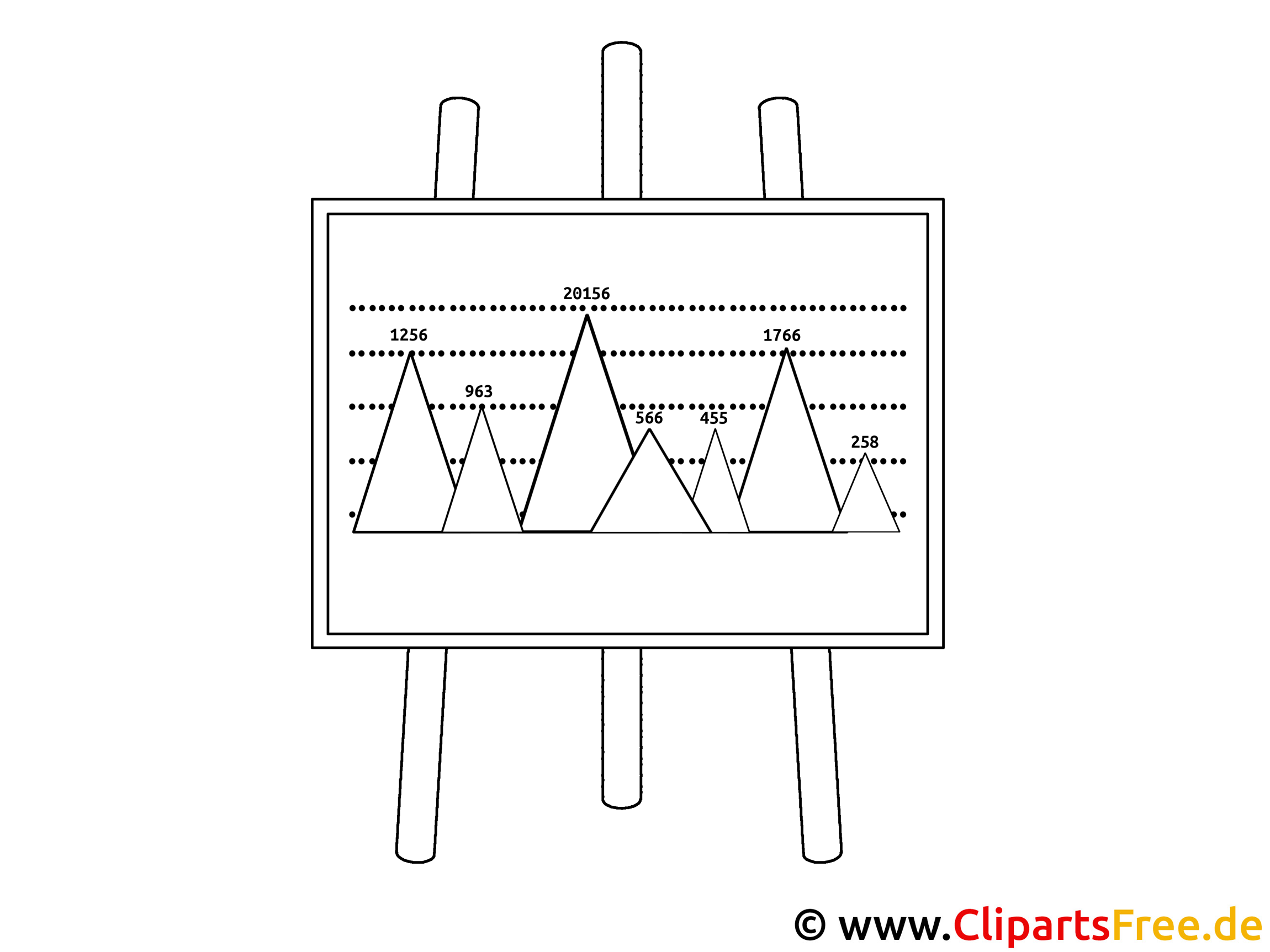 In diesem interessanten Malbild sehen wir eine Grafik, die auf einem Staffelei steht. Diese Grafik zeigt in klaren Linien verschiedene Spitzen und Täler – wie bei einem Berg. Es sind mehrere Zahlen in den Spitzen angeordnet, was diese Grafik noch spannender macht. Also, das Motiv ist schlicht, aber dennoch herausfordernd. naja, Die einzelnen Spitzen laden förmlich dazu ein, sie in bunten Farben auszumalen.