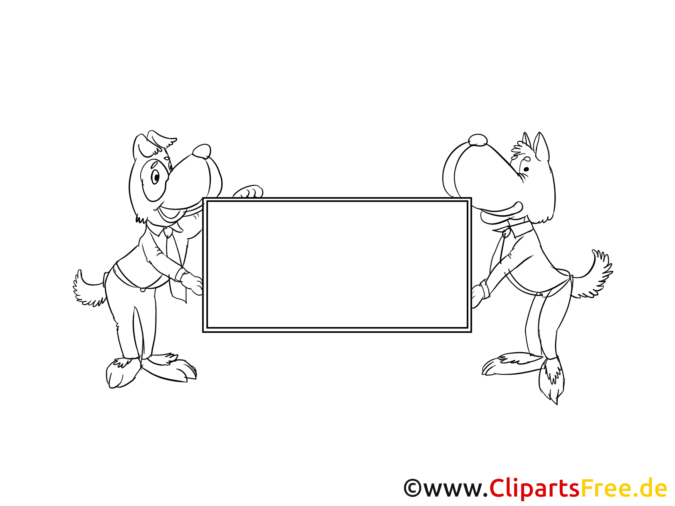 Heute gibt es ein ganz zauberhaftes Ausmalbild! Auf diesem Bild halten zwei fröhliche Hunde ein leeres Schild. Der eine Hund trägt einen kleinen Anzug, ein bisschen schick, und hat einen lustigen Blick. Der andere Hund, das ist der mit dem lockigen Fell, schaut ganz gespannt. Beide scheinen darauf zu warten, was du mit ihrem Schild machen wirst! Vielleicht schreibst du da eine Einladung oder vielleicht eine kleine Nachricht – ganz wie du magst. Das Bild ist super geeignet, um es bunt zu machen und etwas Kreativität in die Welt zu bringen!