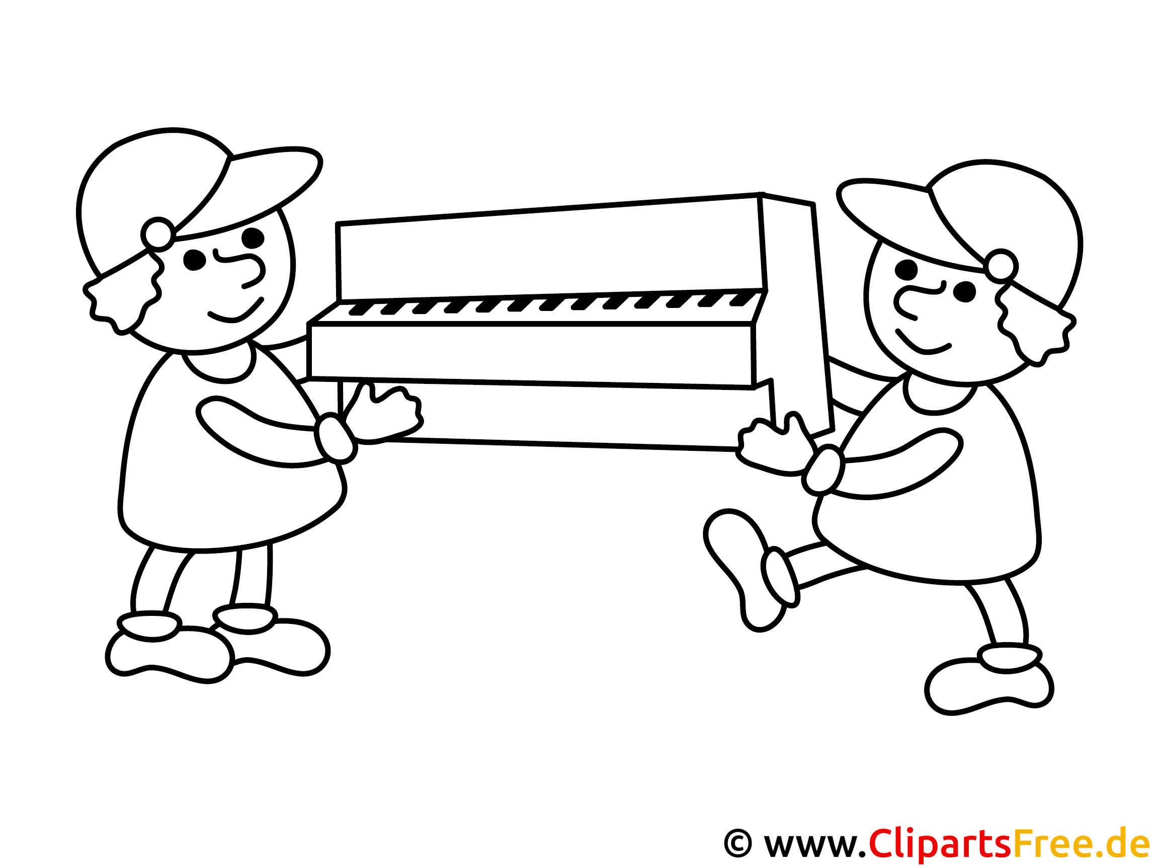 Vorlage zum Drucken und Malen Klavier wird umgezogen, Umzug