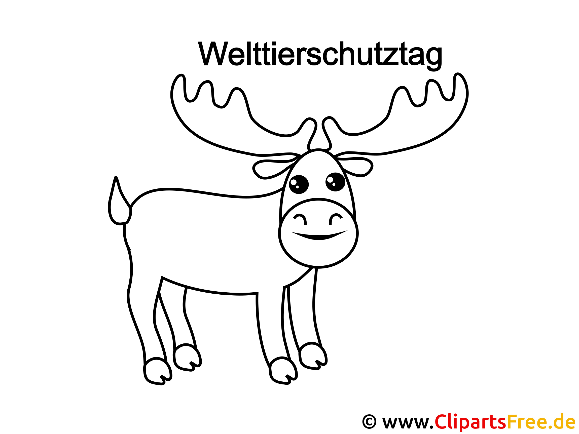 In dieser Malvorlage kannst du einen lustigen Elch sehen. Er hat große, freundliche Augen und ein breites Lächeln, das garantiert gute Laune verbreitet! Die mächtigen Geweihe sind schön geschwungen und verleihen ihm ein ganz besonderes Aussehen. Über dem Elch steht der Schriftzug „Welttierschutztag“. Als Motiv eignet sich dieses Bild hervorragend, um auf das wichtige Thema Tierschutz aufmerksam zu machen. Mit deinen Farben gibst du dem Elch ein Leben, das noch viel mehr Freude bringt!